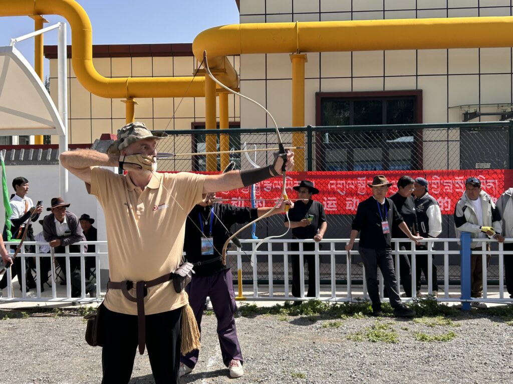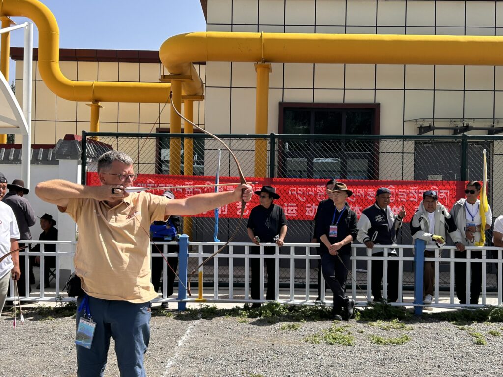 To tu trafia się na człowieka który w zasadzie nas nie zna i zaprasza do siebie na kolację/ucztę a łuk i strzały wystarczą za tłumacza. To tu wjedziesz taksówką w góry prawie na 3000 m n.p.m w Parku Kanbula. Świątynia buddyjska, manufaktura tkacka, sklep z meblami tybetańskimi, nocny targ a zarazem wesołe miasteczko. Strzelnice łucznicze – proszę bardzo! Bierzesz sprzęt i możesz postrzelać w towarzystwie miejscowych. Pooglądać ich łuki i strzały. Podpatrzeć jak strzelają. Zresztą oni robili to samo. A w trakcie turnieju każdy celny strzał nagradzały brawa, jęk zawodu na trybunach pojawiał się przy minimalnych pudłach. Nie ma kunktatorstwa, trzeba strzelać po bandzie w wierzchołek trójkąta, co tam 60 metrów, trafienie w dolną cześć nic nie daje bo wygrywa ten zespół który ma strzałę wyżej na trójkącie a sędziowie liczą odległość co do milimetra. Warto było.”